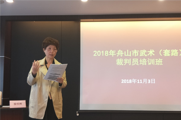 舟山市2018年武术(套路)裁判员培训班11月3-4日在新城举行。培训班由舟山市武协主办,全市34名武术辅导站点骨干人员参加了培训。